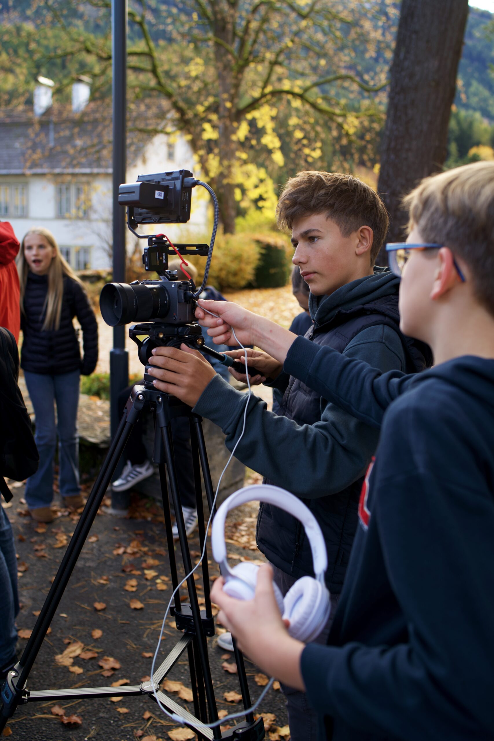 Gemeinsam mit den teilnehmenden Schüler:innen entwickelten wir den fiktiven Kurzspielfilm „Kontrollverlust“, der in einer von künstlicher Intelligenz gesteuerten Schule im Jahr 2050 spielt. Die Jugendlichen arbeiteten in allen Bereichen der Filmproduktion, von der Ideenentwicklung über Drehbuch, Regie und Schauspiel bis hin zu Kamera und Schnitt, aktiv mit.